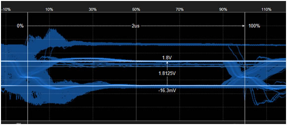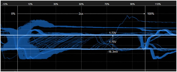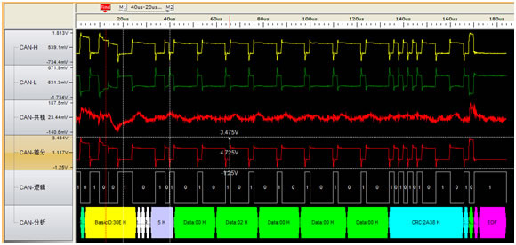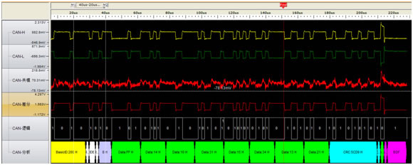 The ID 0 x200, 0 x231 frame waveform doing eye diagram, as shown in figure 7. CAN be clearly seen from the CAN from the master CAN wave reaches the air conditioning CAN interface of amplitude is 1.8 V (measurement point in the network card side, those with high amplitude and other frame is raised when the arbitration). Along with rising and falling waveform resides.