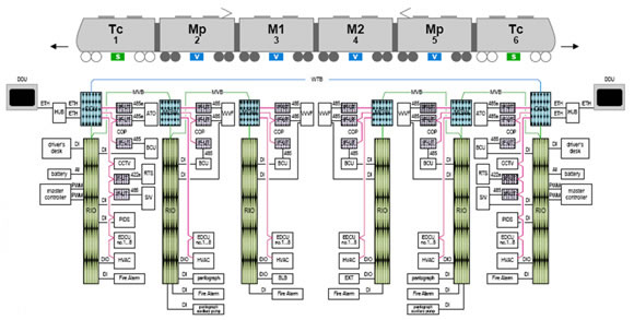 Field bus topology, as shown in figure 2, marshalling of metro vehicle for 6 section, where we test points in the air conditioning controller CAN interface position, the main test signal the CAN bus communication quality.